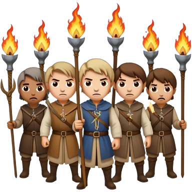 les villagois avec des fourches et des torches sapé en moyen age emoji