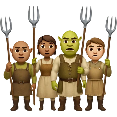les villageois qui certains ont des fourches + torches (pas des fourches enflammer!) sapé en moyen age emoji