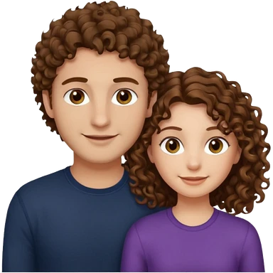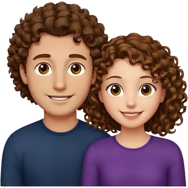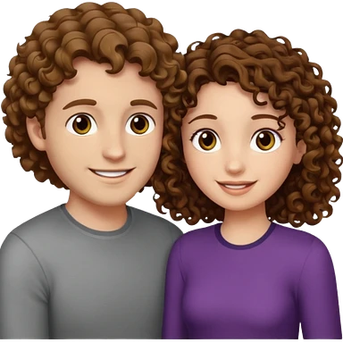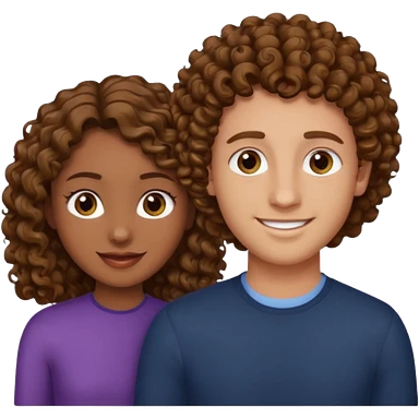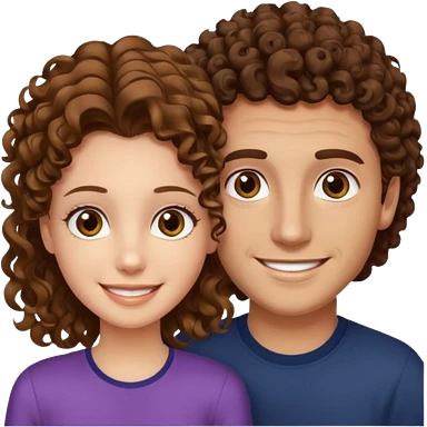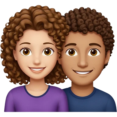 Açık kumral saçlı ela gözlü beyaz tenli erkek ve saçları koyu kahverengi ,kıvırcık saçlı kız yan yana gülümsüyor emoji