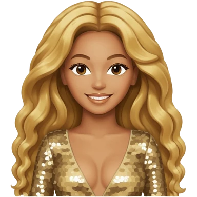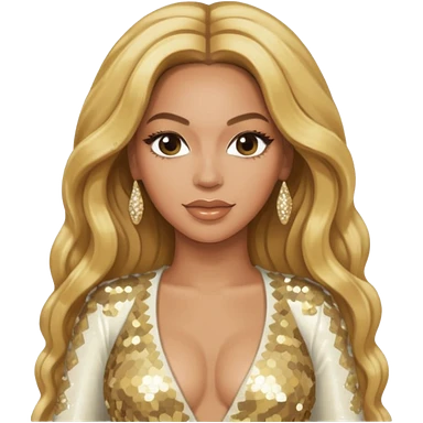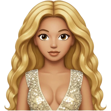 Beyonce from Destiny's Child with long golden blonde hair, cream sequin outfit emoji