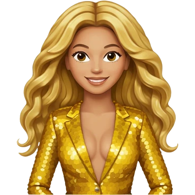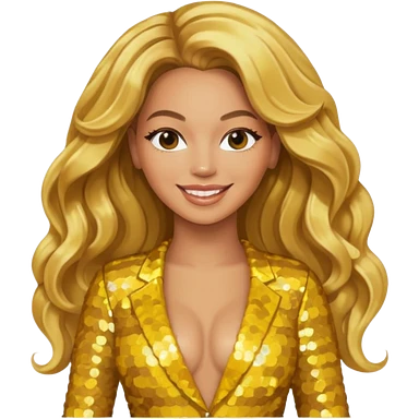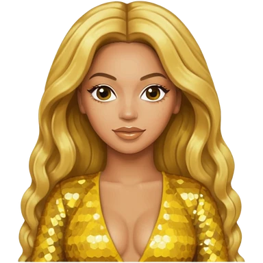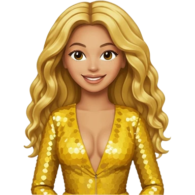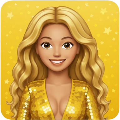 Beyonce from Destiny's Child with long golden blonde hair, yellow sequin outfit emoji
