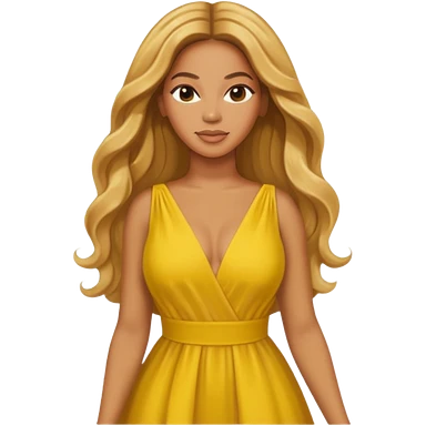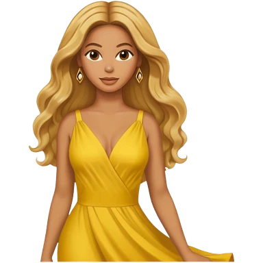 Beyonce with long golden blonde hair, yellow outfit emoji