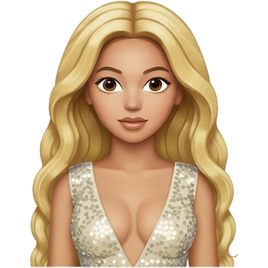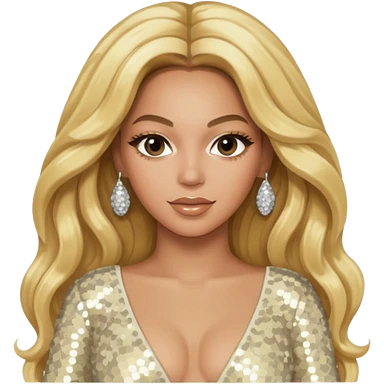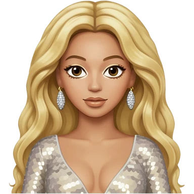 Beyonce from Destiny's Child with long blonde hair, ivory sequin outfit emoji