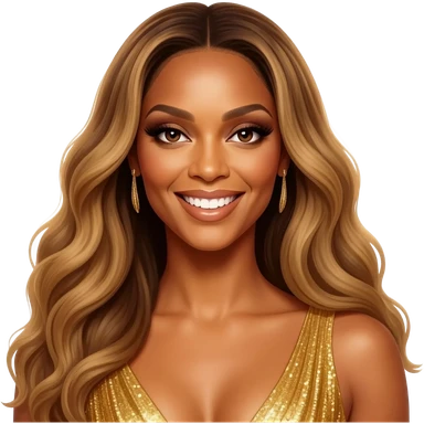 Beyonce with long dark blonde hair, yellow sequin dress emoji