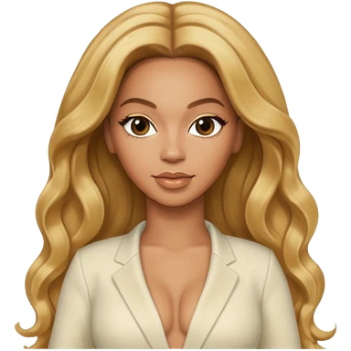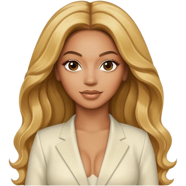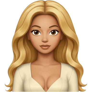 Beyonce with long golden blonde hair, ivory outfit emoji