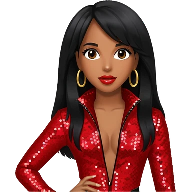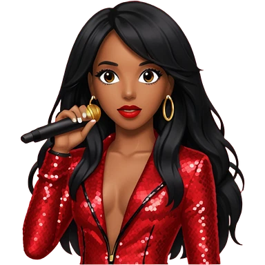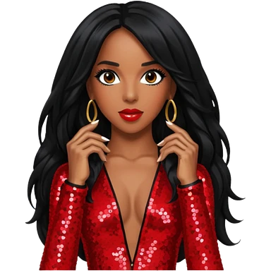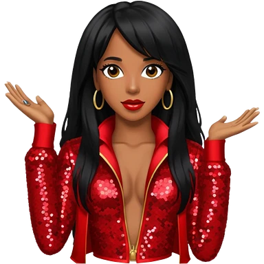 Kelly Rowland with long black hair, red sequin tour outfit emoji
