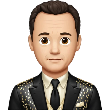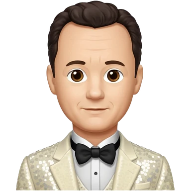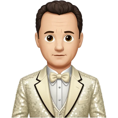 Tom Hanks with dark brown hair, ivory sequin outfit emoji