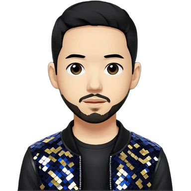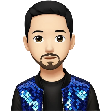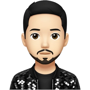 Mike Shinoda with black hair, black sequin tour outfit emoji