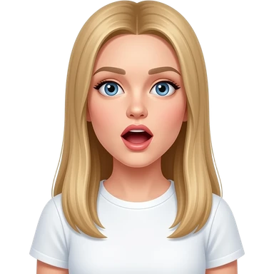 ragazza russa bionda occhi azzurri capelli lisci lunghi, stupita a bocca aperta maglietta bianca emoji