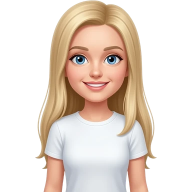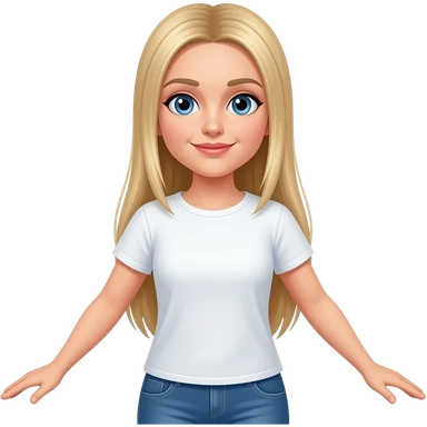 ragazza russa bionda occhi azzurri capelli lisci lunghi, felice a gambe larghe maglietta bianca emoji