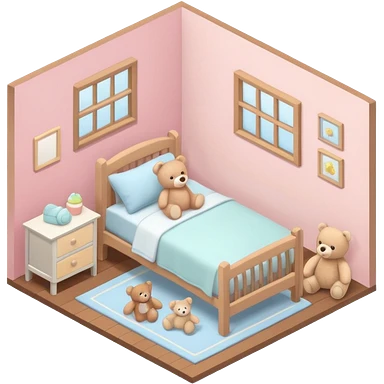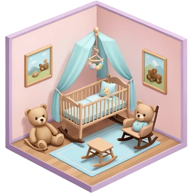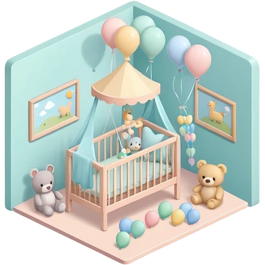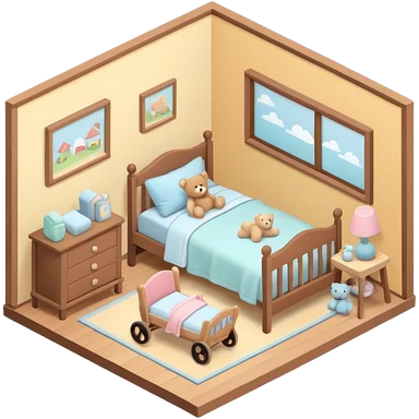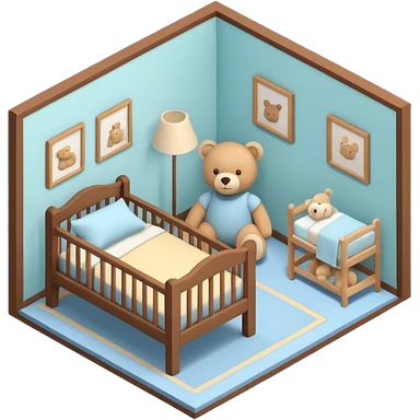 isometric baby room, Cozy baby room with crib and teddy bear emoji