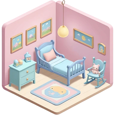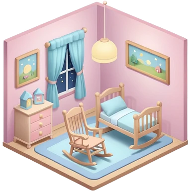 isometric baby room, Baby room with night lamp and rocking chair emoji