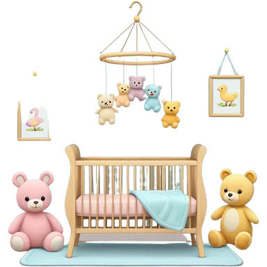 Cozy baby room with crib and teddy bear emoji