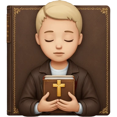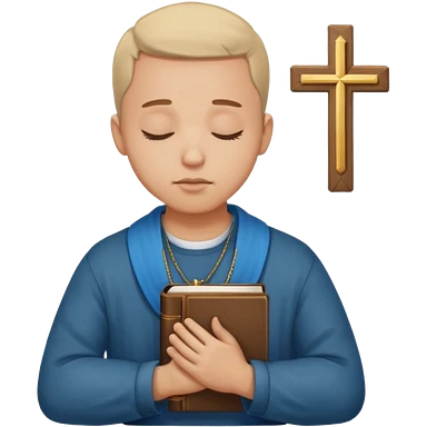 Guy who reads Bible with cross on it and with his eyes closed in prayer and without anything in the background emoji