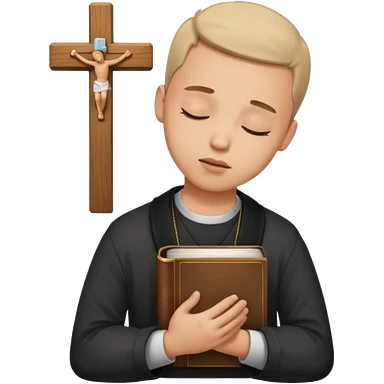 Guy who reads Bible with cross on it and with his eyes closed in prayer. Nothing in the background emoji