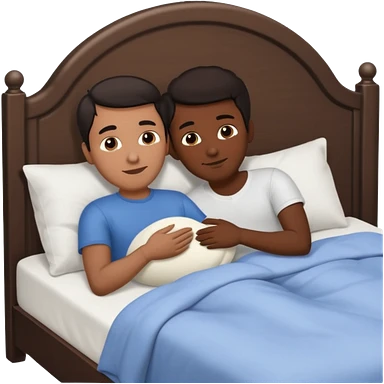 Black adult male and white male adult dark hair, naked, spooning in bed emoji