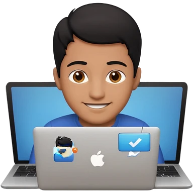 make an emoji of a happy malenerd black hair developer behind laptop emoji