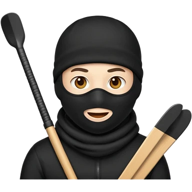 Create an emoji wearing a black ski mask not a creepy big smile though and no need for spoons emoji