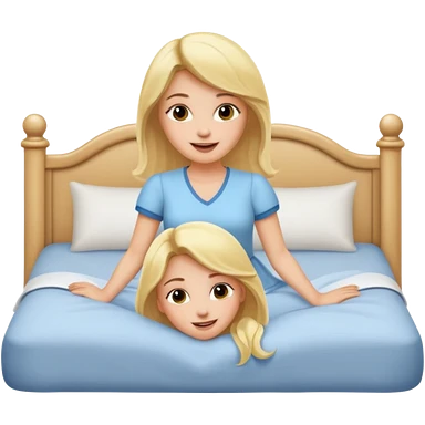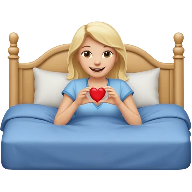girl with short black hair laying in a big bed with a beige comforter emoji
