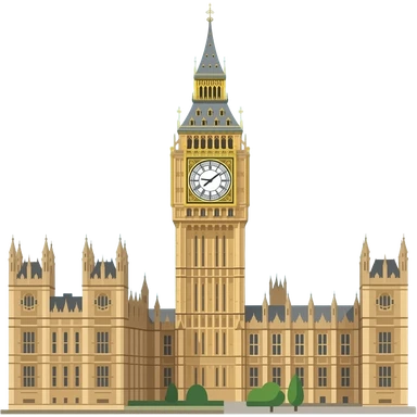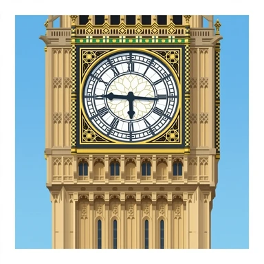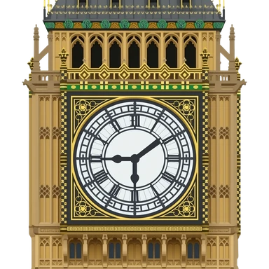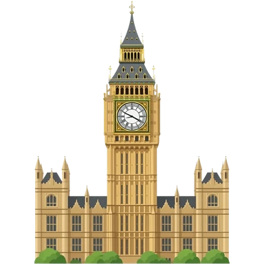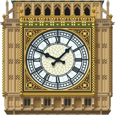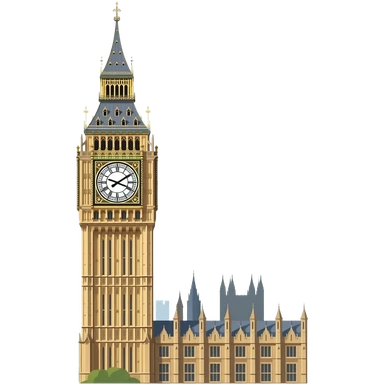 Big Ben clock tower, full tower only, isolated, centered, no background, no skyline, no buildings, no street, no scenery, no text, detailed clock face, warm beige stone, elegant gold details, clear iconic London look emoji