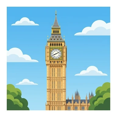 Big Ben in elegant red, blue, and white, iconic London landmark emoji