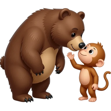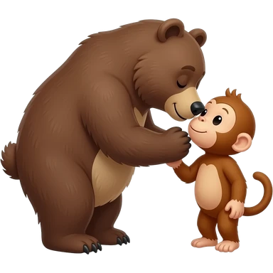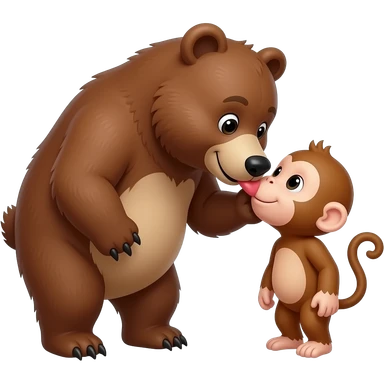 A big bear kissing a tiny monkey emoji