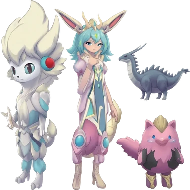Romantic Realistic Meloetta-Sylveon-Palkia-Cresselia-Digimon-Pokémon-Fakémon-hybrid-fusion, full body emoji