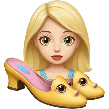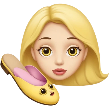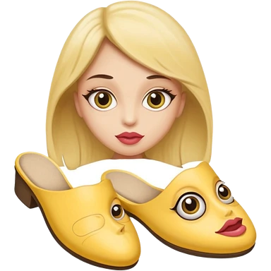 make an emoji that big lips 👄 and big eye leads big eyes 👀 and yellow circle face and a sleeper shoe in her hand emoji