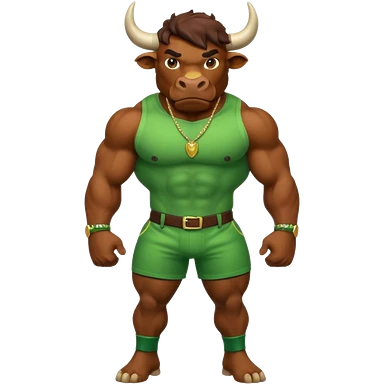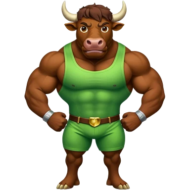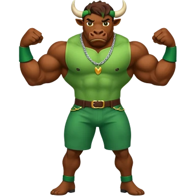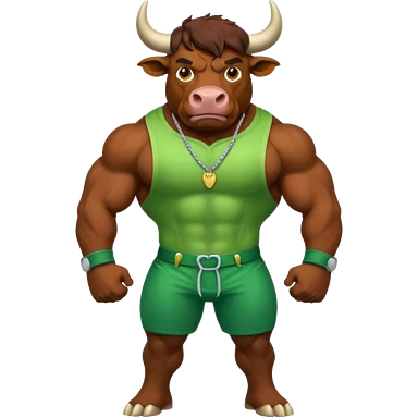 Big green bull full body with brown jacket and big nuts emoji