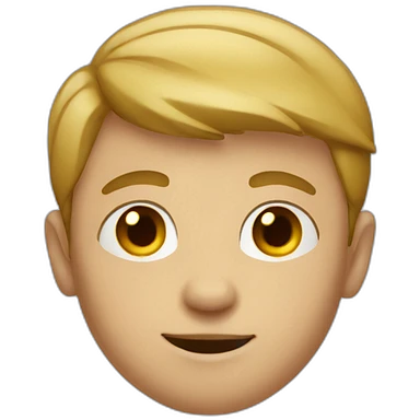 emoji face of a boy with brown hair, big brown eyes, and a neutral expression. in the head of the AirPods max emoji
