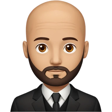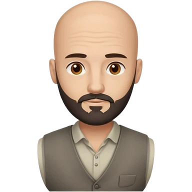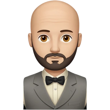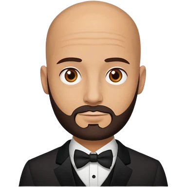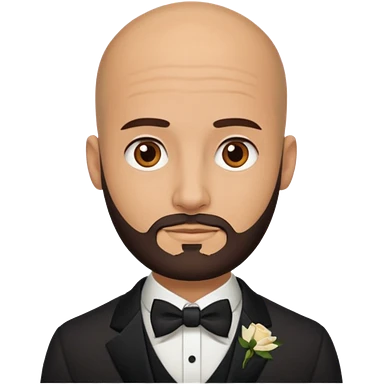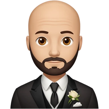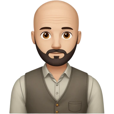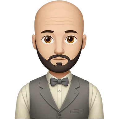 bald headed brown eyes groom with dark beard cream shirt grey vest emoji