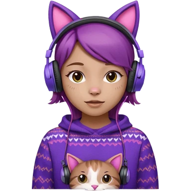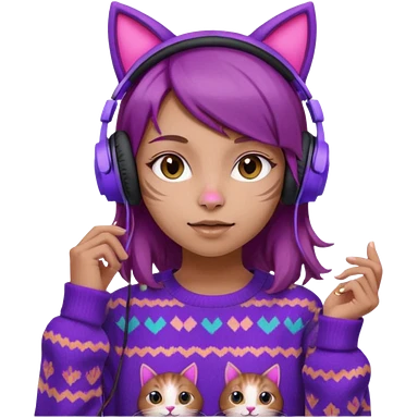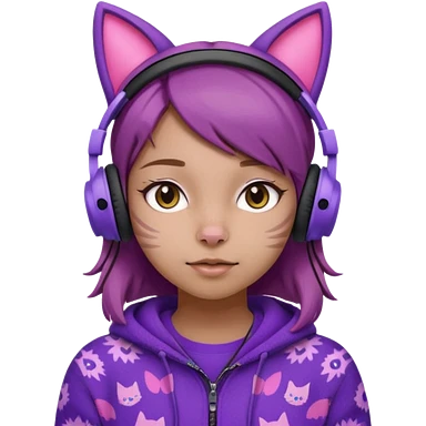 une fille avec des écouteurs de chat rose et des cheveux brun qui est crazy chandaille mauve emoji