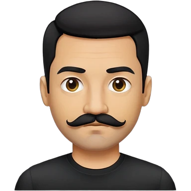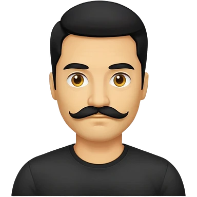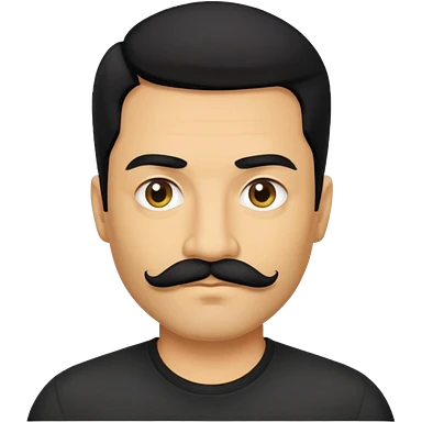 đàn ông 40 tuổi, da vàng đậm, tóc ngắn màu đen, ria mép màu đen, áo đen emoji