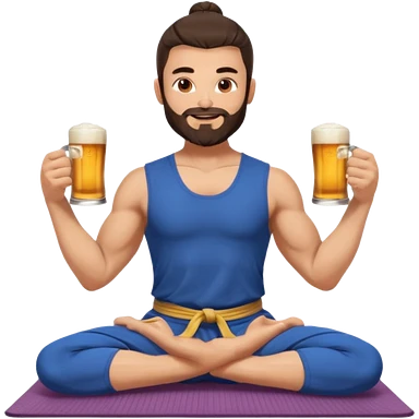 big slavic guy sitting in yoga pose, spiky short dark hair, holding beer mugs in two hands emoji