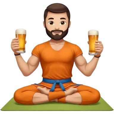 big slavic guy sitting in yoga pose, spiky short dark hair, holding beer mugs in two hands, winter dressed emoji | AI Emoji Generator