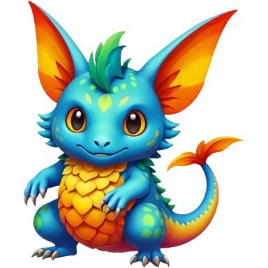 Dark bright neon colorful edgy exotic Fakémon-Pokémon-Vernid-creature emoji