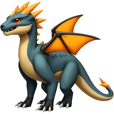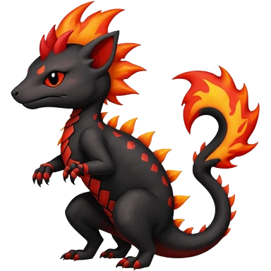 Magmatic fiery badass cool obsidian-Black and golden-orange Helioptile-Marowak-Salamence-Fakémon-hybrid-creature (full body) emoji