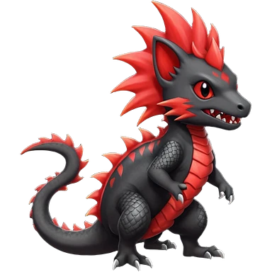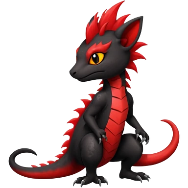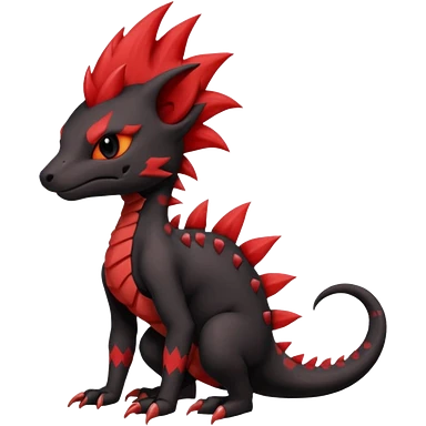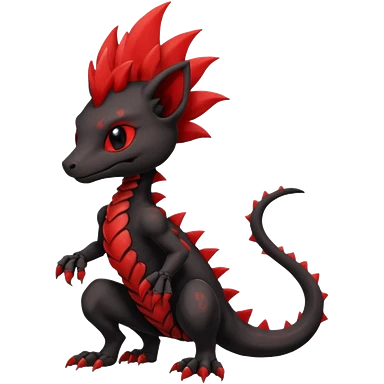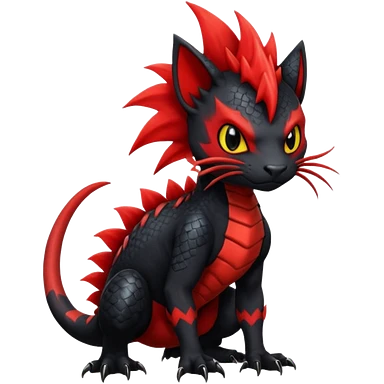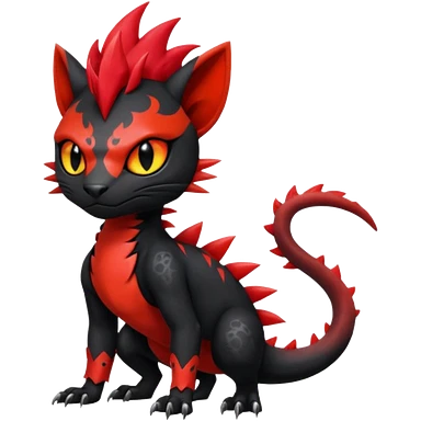 Shiny cool Fiery gothic evil black and red salandit-Liten-torracat with a red Mohawk emoji