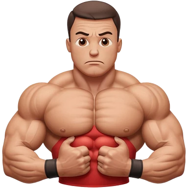 hyper realistic muscular bodybuilder with inflated muscles and worried face, low battery symbol near pelvic area, Italian caption 'Libido assente', isolated on white background emoji