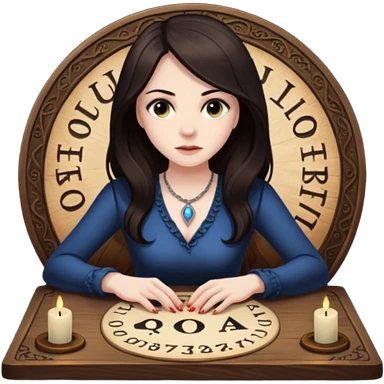Sarah winchester, the Winchester fortune heiress, sitting att a ouija board emoji
