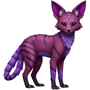 Feral Rare realistic edgy burgundy-purple pretty beautiful handsome gorgeous aesthetic colorful vibrant Vernid-Trico-species-Fakemon-creature by LiLaiRa, random markings, tufted ears, full body emoji
