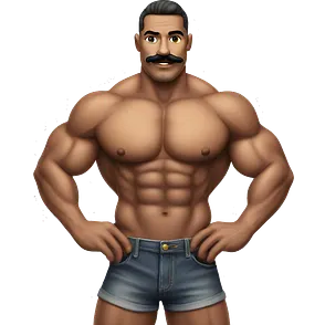 Muscular gay bodybuilder with mustache bikini realistic emoji