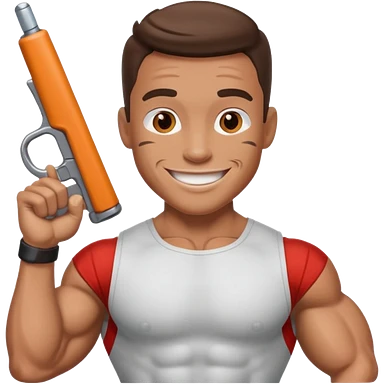 Billy the puppet from Saw, emoji style, white face, red spiral cheeks, black hair, red bow tie emoji