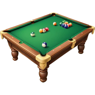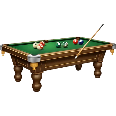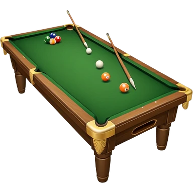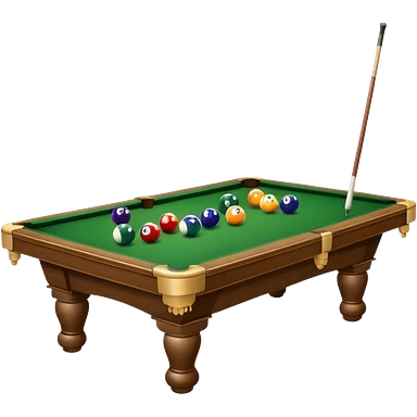 A billiard table with colorful balls arranged in a triangle, and a cue stick poised to break. The scene is set in a dimly lit room, with focused lighting highlighting the balls and table, emphasizing skill, precision, and strategy in the game of pool. emoji