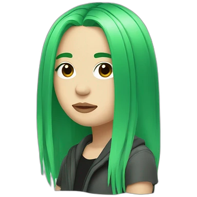 Billie Eilish with green hair, oversized clothing, moody expression, pop star vibe, Apple emoji style emoji