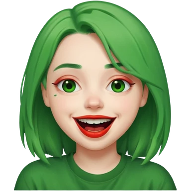 girl with green hair like Billie Eilish and red lipstick, laughing expression emoji