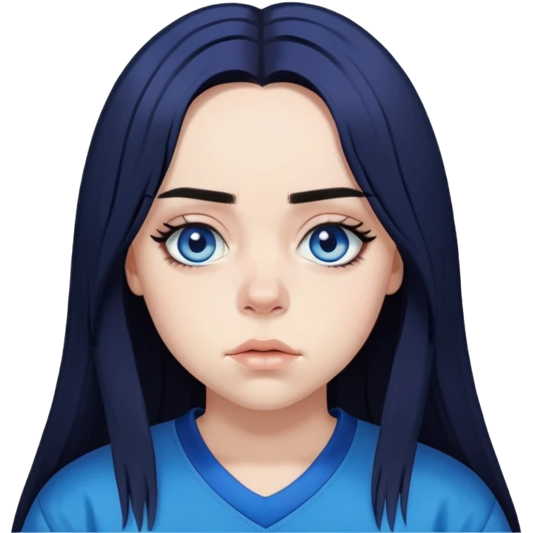 billie eilish long black hair blue eyes dark eyeliner makeup, wearing jersey emoji | AI Emoji Generator