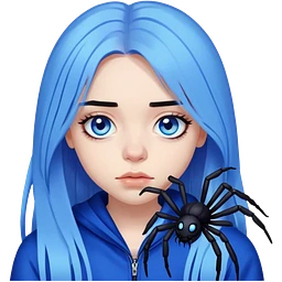 billie eilish wearing backwards cap, black hair, black eyeliner, light blue eyes emoji | AI Emoji Generator