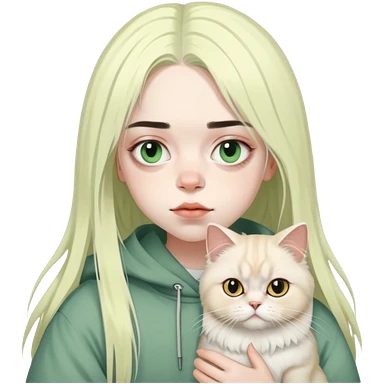Billie Eilish with signature green roots, neutral face, pop music theme, Apple emoji style emoji