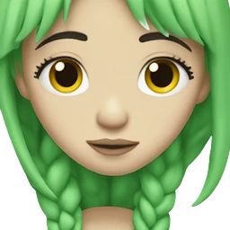 Billie eilish with green hairs and blue eyes emoji | AI Emoji Generator